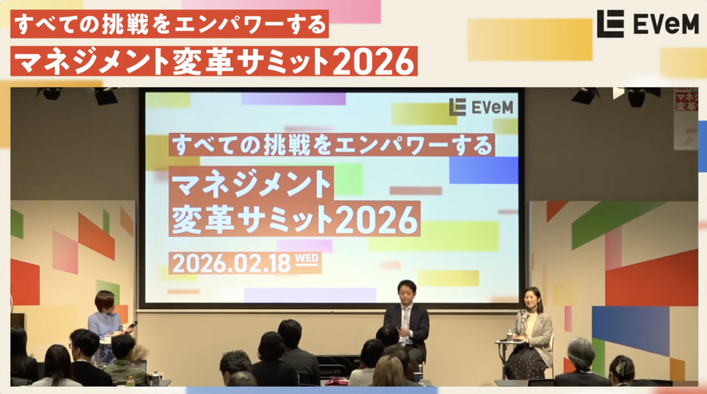 2026年2月に執行役員・鈴木富貴が、次世代リーダー育成を支援するEVeM主催「マネジメント変革サミット」セッションにて、次世代女性リーダーを生み出す「社内改革 × 越境コミュニティ」をテーマにモデレーターを務めました。