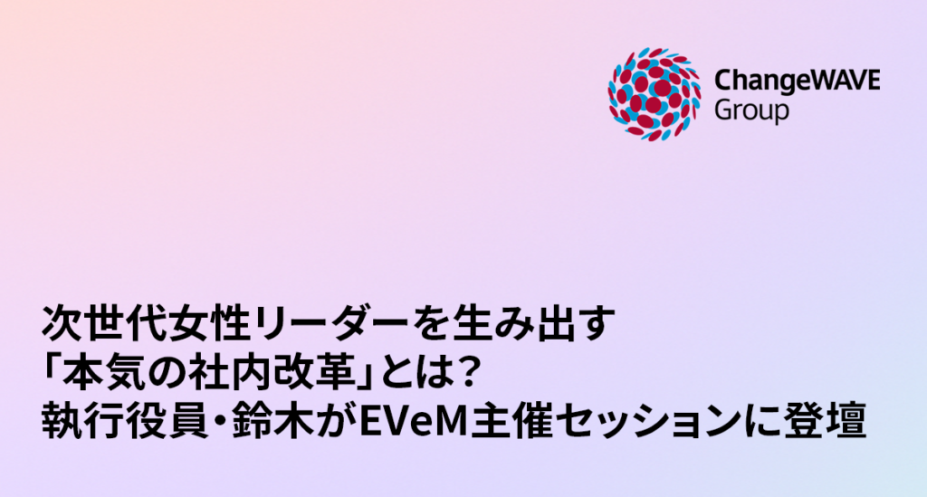 2026年2月に執行役員・鈴木富貴が、次世代リーダー育成を支援するEVeM主催「マネジメント変革サミット」セッションにて、次世代女性リーダーを生み出す「社内改革 × 越境コミュニティ」をテーマにモデレーターを務めました。 … 続きを読む 次世代女性リーダーを生み出す「本気の社内改革」とは?執行役員・鈴木富貴がEVeM主催セッションに登壇