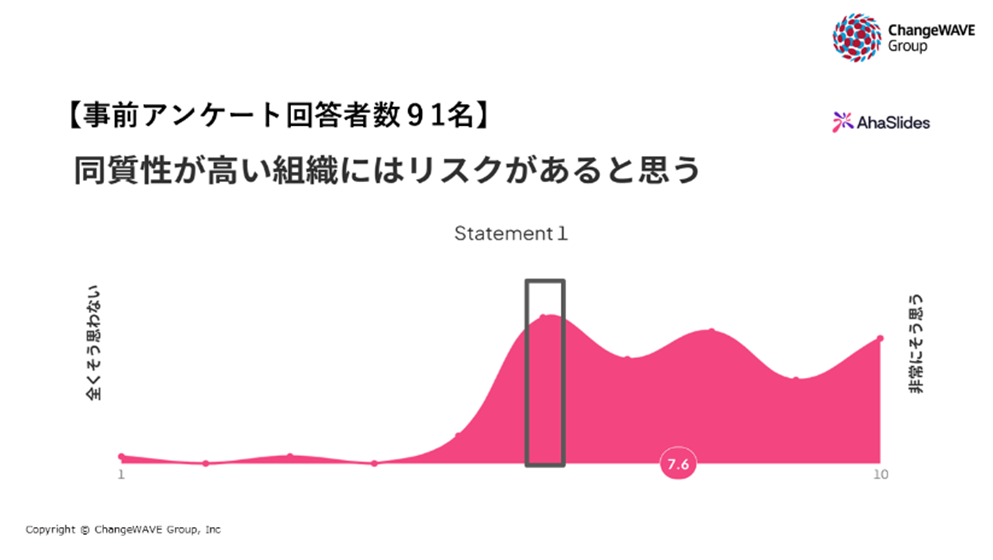 【事前アンケート②】 「同質性が高い組織にはリスクがあると思う」平均7.6