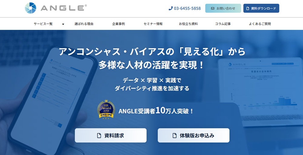 先述した事例のように、組織変革を実現するには無意識を意識化し、行動変容へとつなげる仕組みが不可欠です。チェンジウェーブが提供する「ANGLE」は、心理学研究の知見に基づいた eラーニングと診断テストを組み合わせ、実効性の高い行動変容を後押しします。